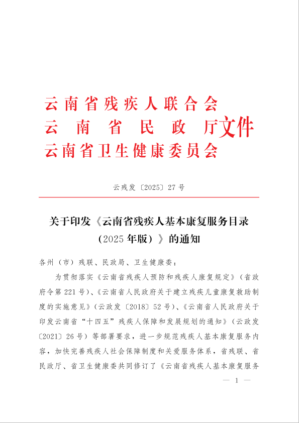 《云南省残疾人基本康复服务目录(2025年版)》